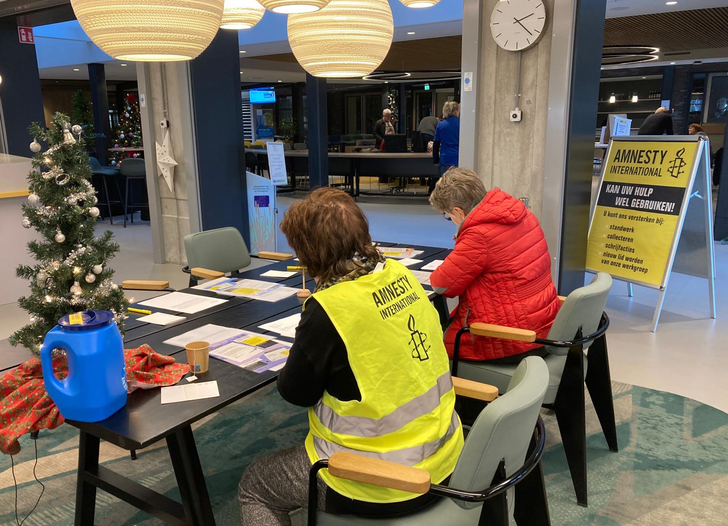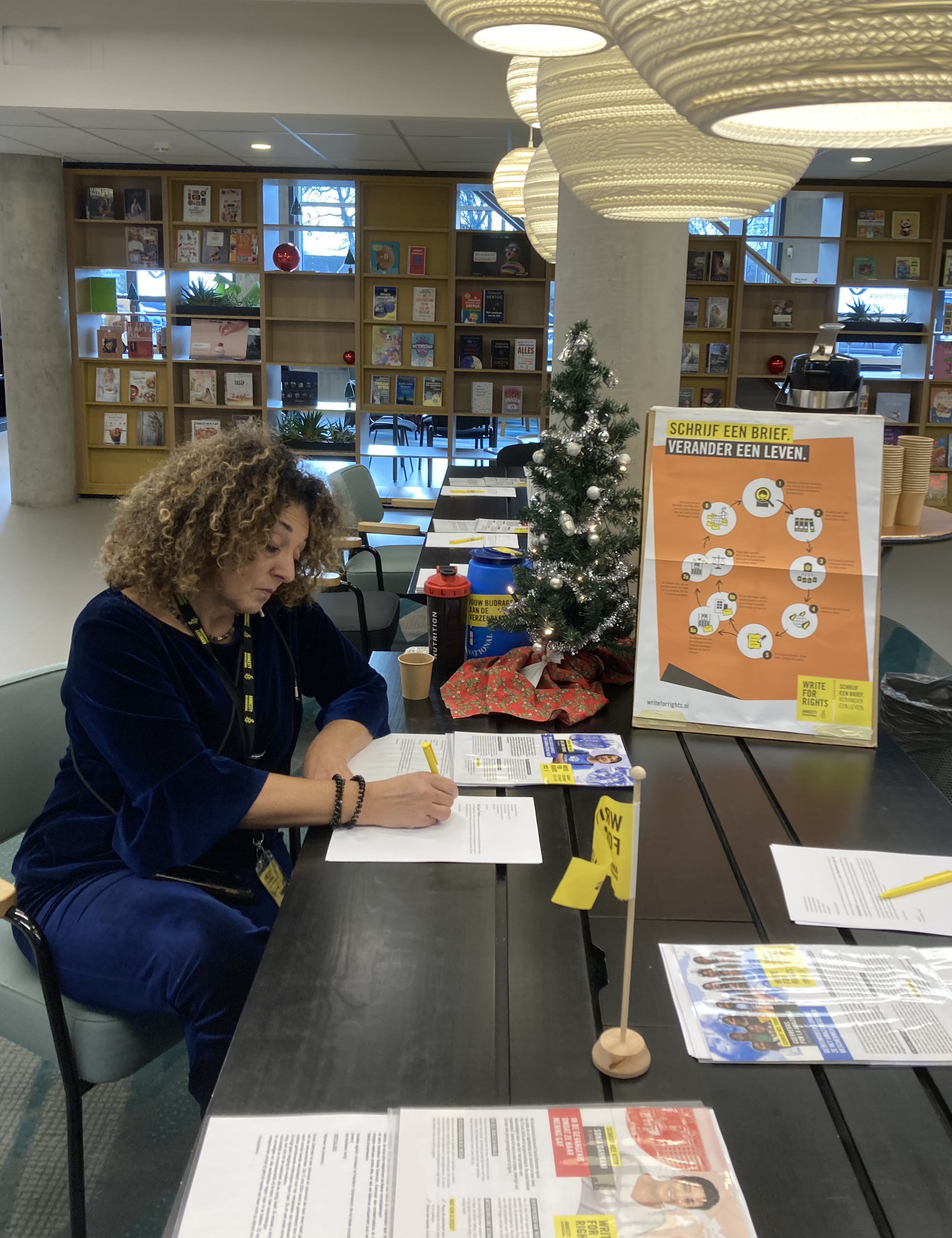 Dit jaar waren leden van onze groep actief in De Binding in Langedijk, in De Brink in Obdam en de Bibliotheek/gemeentehuis in Heerhugowaard. En ook veel mensen die in de buurt waren, kwamen even langs om een brief te schrijven, een handtekening te zetten en ook een groetenkaart te maken.