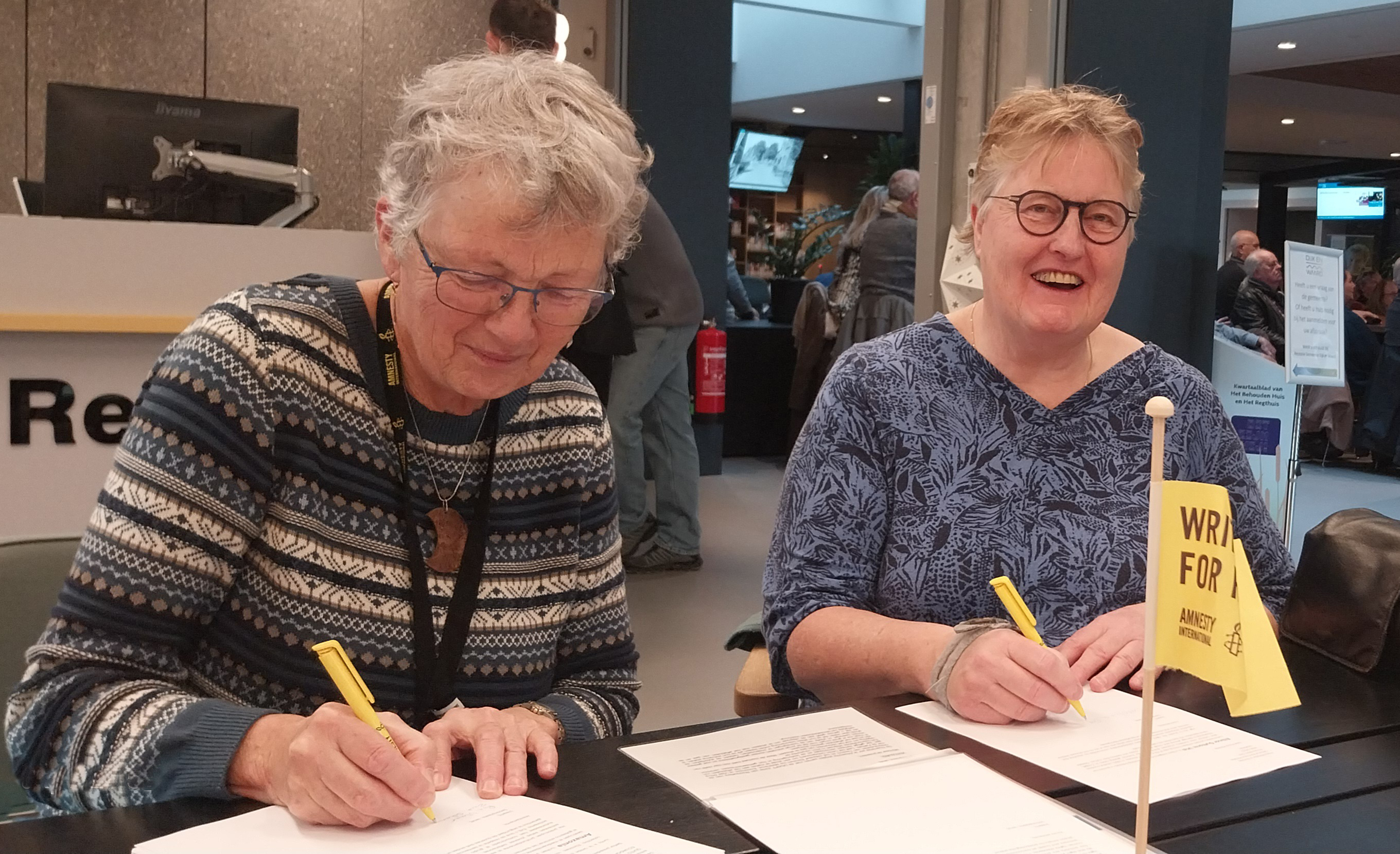 Helaas zijn er geen foto's gemaakt van de schrijfactie in De Binding in Langedijk, maar er zijn veel brieven geschreven en ondertekend.