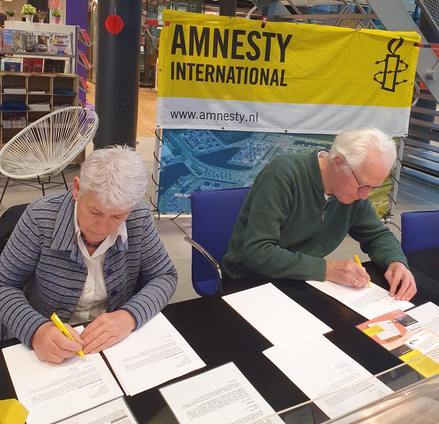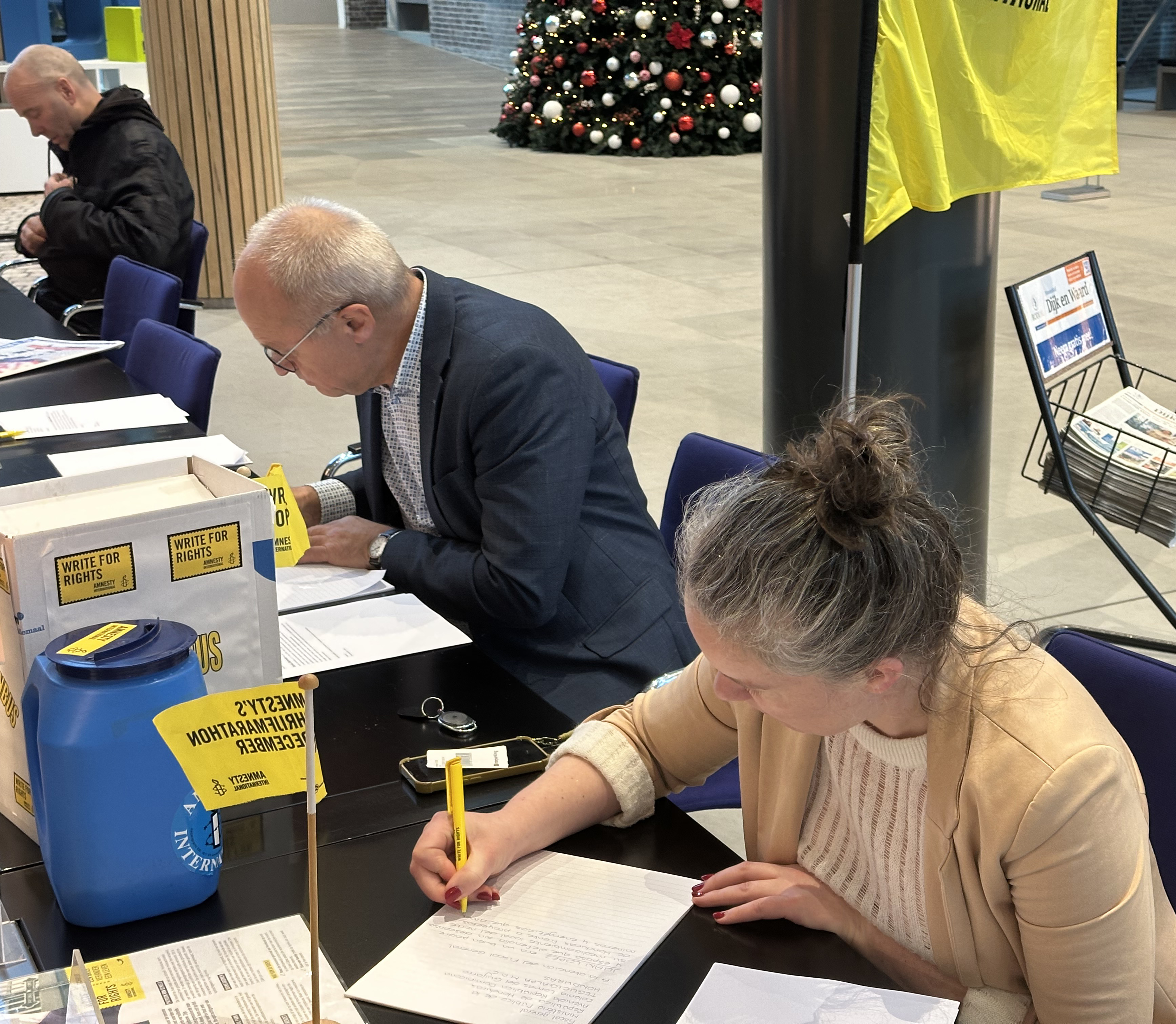 Zowel in Heerhugowaard als in Obdam waren leden van onze groep actief. En niet alleen zij! Veel mensen die in de buurt waren, kwamen even langs om een brief te schrijven, een handtekening te zetten of zelfs een groetenkaart te maken.