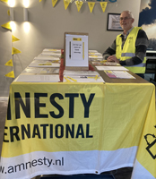 Traditioneel stond de stand van Amnesty International ook nu weer op de drukke jaarmarkt in Heerhugowaard. En waren onze leden weer volop actief.